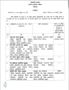 भोपाल। मप्र सरकार ने सोमवार को बड़ी प्रशासनिक सर्जरी की है, जिसमें भारतीय प्रशासनिक सेवा के 42 अफसरों के तबादले किए है। 2009 के आईएएस और इंदौर कलेक्टर मनीष सिंह को परिवहन के साथ-साथ अब जेल विभाग का सचिव भी बनाया गया है… इसके साथ ही उनके पास राज्य सड़क परिवहन निगम, मुख्य कार्यपालन अधिकारी, इंटर स्टेट ट्रांसपोर्ट अथॉरिटी भोपाल का भी अतिरिक्त प्रभार रहेगा… इसी तरह भव्या मित्तल को बुरहानपुर की जगह खरगोन में कलेक्टरी का जिम्मा मिला… इसी तरह ऋतु राज को देवास कलेक्टर का जिम्मा सौंपा गया है।