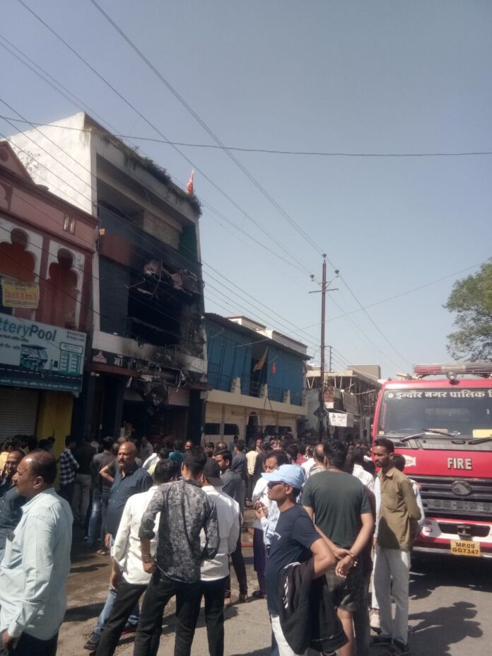 दमकलकर्मियों के मुताबिक क्लर्क कॉलोनी में जितेंद्र गोयल की किराना दुकान में मंगलवार सुबह आग लगी। जितेंद्र का परिवार दुकान के ऊपर ही रहता था। घटना के समय जितेंद्र की पत्नी अनिता, छोटा बेटा मयंक और एक अन्य युवक मौजूद था। घर से आने–जाने के लिए दुकान में से ही रास्ता था इसलिए आग लगने पर परिवार घिर गया।