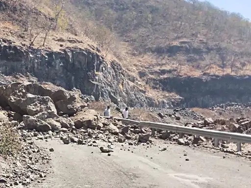 जानकारी के मुताबिक सोमवार सुबह जाम गेट से एक किलोमीटर दूर पहाड़ का एक हिस्सा धंस गया। वहां मौजूद लोगों ने भागकर अपनी जान बचाई। पहाड़ धंसने के बाद पूरे रोड पर पत्थर ही पत्थर बिखरे हुए हैं। दोनों तरफ लंबा ट्रैफिक जाम हो गया है। ट्रैफिक कंट्रोल करने के लिए महू के आशापुर में वाहनों को रोका जा रहा है।
